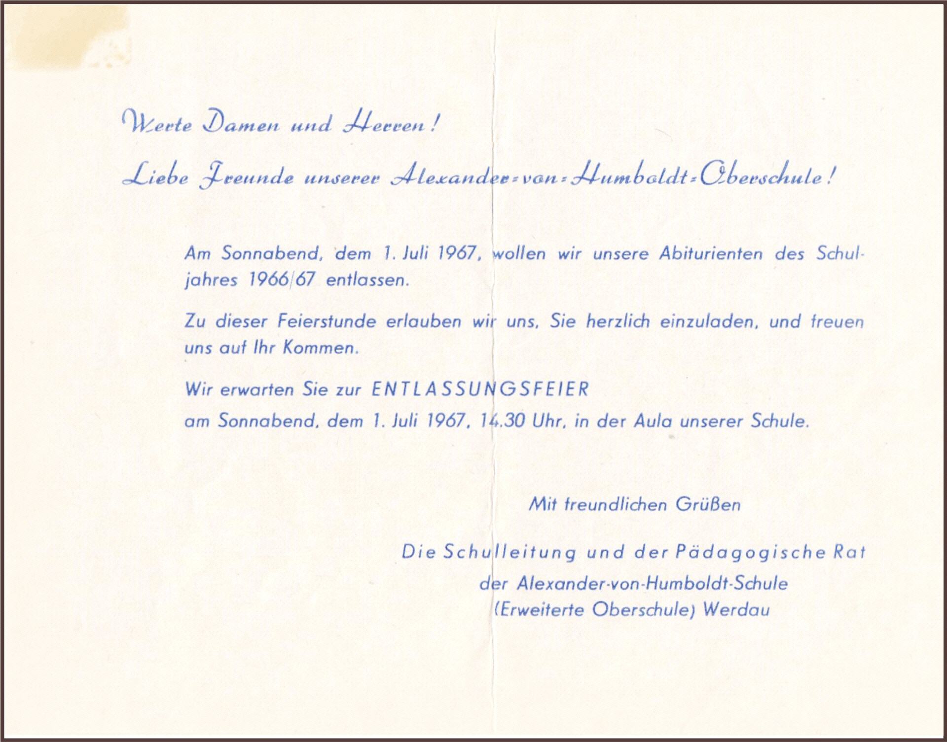 1963 - 1967 | Alexander-von-Humboldt-Oberschule | 50 Jahre Abitur 2017